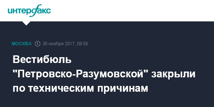 Москва. 30 ноября. INTERFAX.RU - Северный вестибюль станции "Петровско-Разумовская" Московского метрополитена в четверг утром временно закрылся для входа и выхода пассажиров.