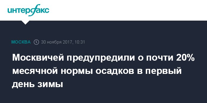 Москвичей предупредили о почти 20% месячной нормы осадков в первый день зимы