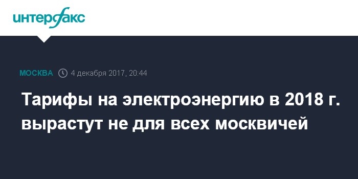 Тарифы на электроэнергию в 2018 г. вырастут не для всех москвичей