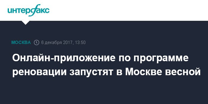 Москва. 6 декабря. INTERFAX.RU - К весне следующего года планируется разработать интернет-приложение по программе реновации жилья в Москве, сообщила журналистам в среду председатель Москомархитектуры Юлиана Княжевская.