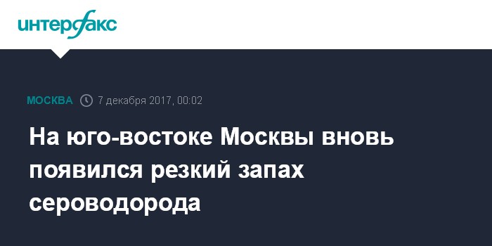 Москва. 6 декабря. INTERFAX.RU - Сильный неприятный запах сероводорода отмечается в Юго-Восточном округе (ЮВАО) Москвы.