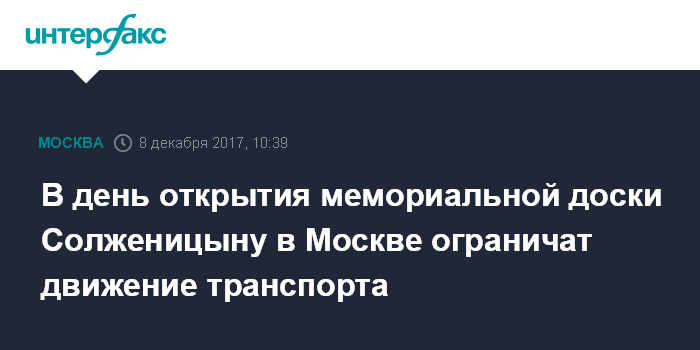 В день открытия мемориальной доски Солженицыну в Москве ограничат движение транспорта