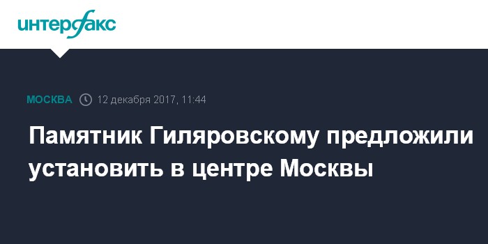 Москва. 12 декабря. INTERFAX.RU -Письмо с просьбой об установке памятника писателю и журналисту Владимиру Гиляровскому на Хитровской площади в центре столицы поступило в комиссию по монументальному искусству при Мосгордуме, сообщили "Интерфаксу" в городском парламенте во вторник.