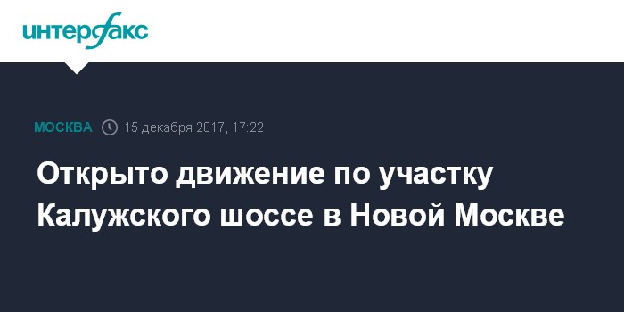 Открыто движение по участку Калужского шоссе в Новой Москве