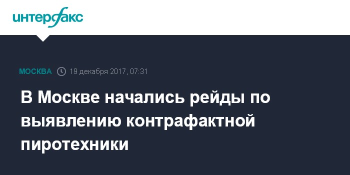 Москва. 19 декабря. INTERFAX.RU - В Москве в понедельник начались рейды по выявлению в продаже нелегальной пиротехнической продукции, которые продлятся до конца новогодних и рождественских праздников 8 января, сообщает сайт столичной мэрии во вторник.