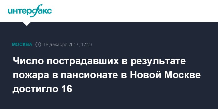 Москва. 19 декабря. INTERFAX.RU - По предварительным данным, в результате пожара в частном пансионате в Новой Москве пострадали 16 человек, сообщил мэр города Сергей Собянин.