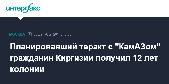 Планировавший теракт с "КамАЗом" гражданин Киргизии получил 12 лет колонии