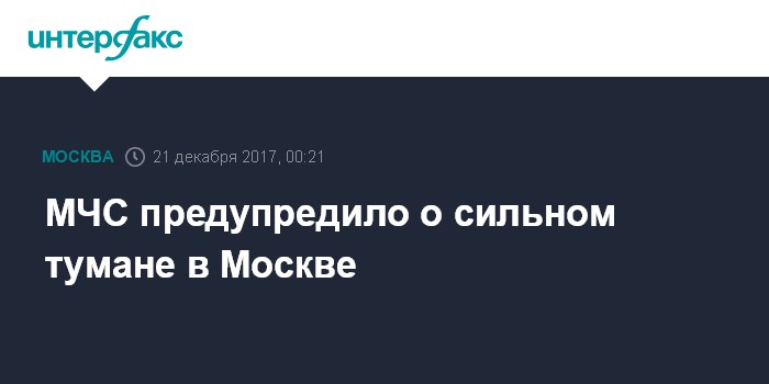"По информации синоптиков, Росгидромет в ближайшие 1-3 часа с сохранением до 11:00 часов 21 декабря 2017 года в Москве местами ожидается туман с видимостью 200-500 м", - сказал агентству сотрудник главка.