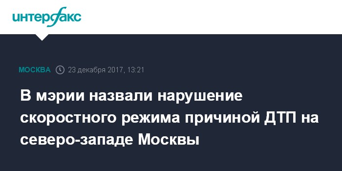 В мэрии назвали нарушение скоростного режима причиной ДТП на северо-западе Москвы