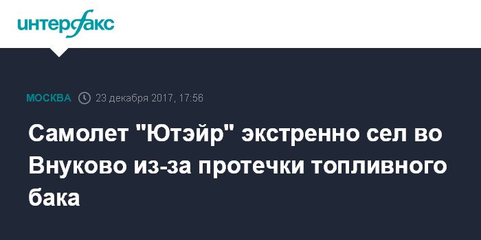 Самолет "Ютэйр" экстренно сел во Внуково из-за протечки топливного бака