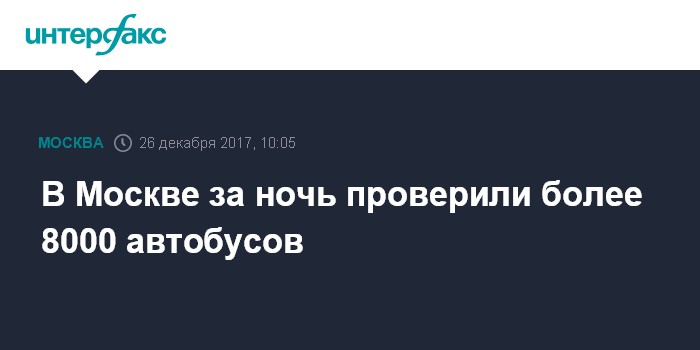 Москва. 26 декабря. INTERFAX.RU - Внеплановая проверка автобусов, обслуживающих регулярные маршруты в Москве, завершилась в 5 утра вторника, сообщается на сайте столичной мэрии.
