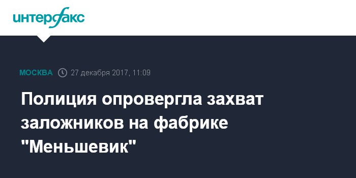 Москва. 27 декабря. INTERFAX.RU - Официальный представитель ГУ МВД РФ по Москве Юрий Титов опроверг появившуюся в СМИ информацию о том, что на фабрике "Меньшевик", где бывший владелец открыл стрельбу, находились заложники.