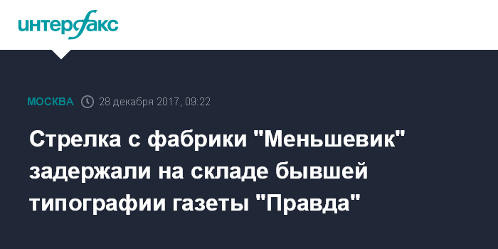 Стрелка с фабрики "Меньшевик" задержали на складе бывшей типографии газеты "Правда"