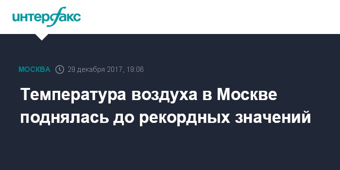 Москва. 29 декабря. INTERFAX.RU - На базовой московской метеостанции на ВДНХ к 17:00 вторника температура атмосферного воздуха в Москве поднялась до 3,6 градусов.