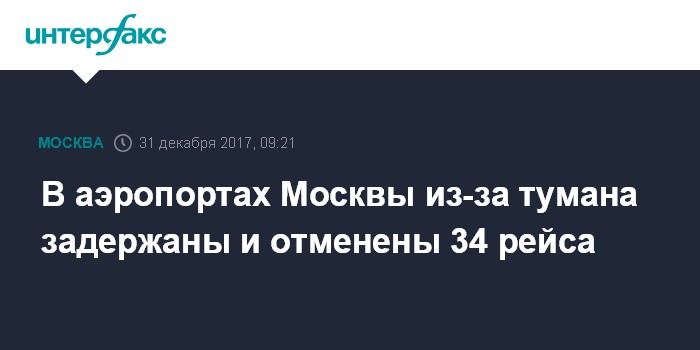В аэропортах Москвы из-за тумана задержаны и отменены 34 рейса
