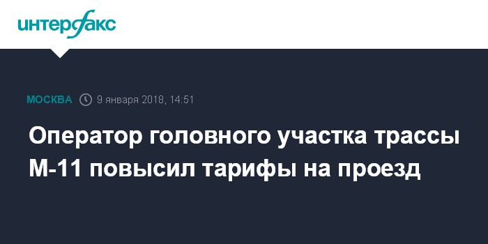 Москва. 9 января. INTERFAX.RU - Оператор головного участка платной автодороги М-11 "Москва-Санкт-Петербург" ООО "Северо-Западная концессионная компания" (СЗКК) с 9 января повысил тарифы на проезд по трассе с 15-го по 58-й км.