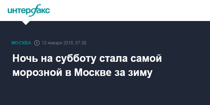 Москва. 13 января. INTERFAX.RU - На базовой метеостанции Москвы на ВДНХ в ночь на субботу температура воздуха опускалась до 8,7 градусов мороза, сообщили "Интерфаксу" в столичном метеобюро.