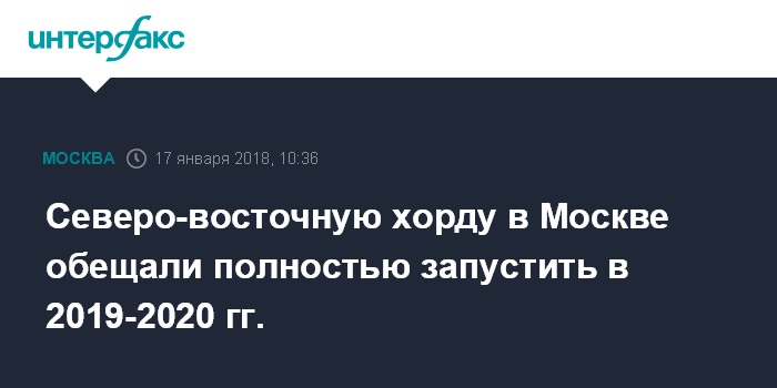 Северо-восточную хорду в Москве обещали полностью запустить в 2019-2020 гг.