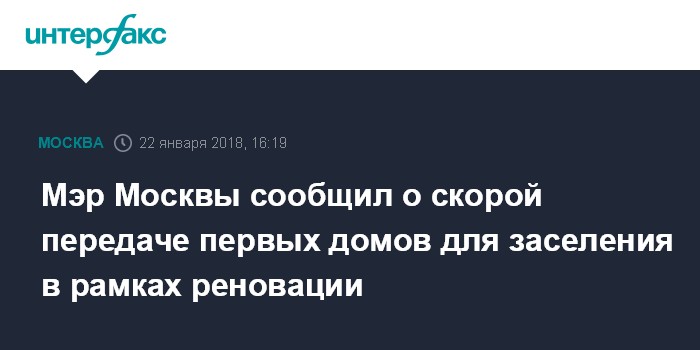 Москва. 22 января. INTERFAX.RU - В Москве в ближайшее время передадут первые дома для заселения по программе реновации, сообщил мэр города Сергей Собянин в ходе собрания Общественной палаты Москвы в понедельник.