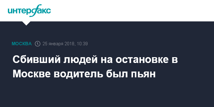 Москва. 25 января. INTERFAX.RU - Мужчина, управлявший автомобилем, въехавшим в остановку общественного транспорта накануне на проспекте Мира в Москве, был пьян, сообщил в четверг "Интерфаксу" осведомлённый источник.