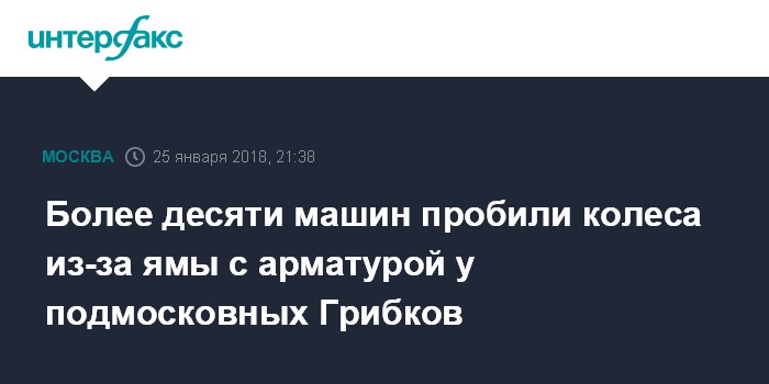 Москва. 25 января. INTERFAX.RU - Несколько автомобилей повредили колеса в районе подмосковной деревни Грибки из-за ямы на дороге.