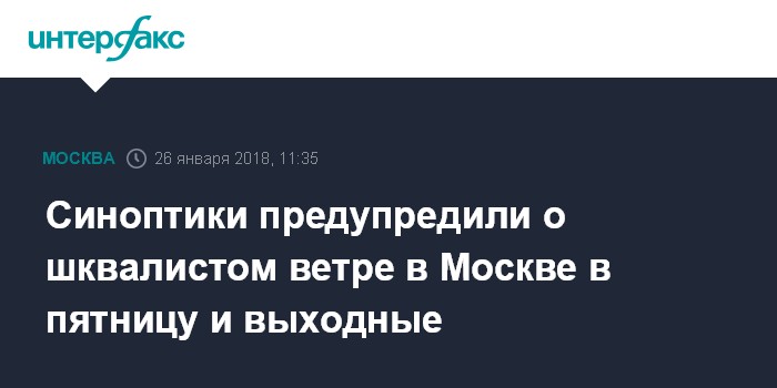 Москва. 26 января. INTERFAX.RU - Синоптики предупреждают о сильном ветре, который сохранится в Москве и Московской области вплоть до воскресенья, сообщает Гидрометцентр России.