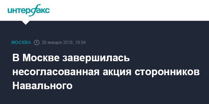 Москва. 28 января. INTERFAX.RU - Несанкционированная акция сторонников оппозиционера Алексея Навального в центре Москвы завершилась.