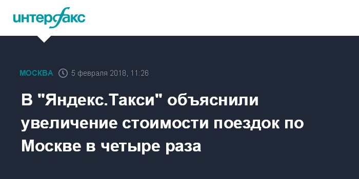 В "Яндекс.Такси" объяснили увеличение стоимости поездок по Москве в четыре раза