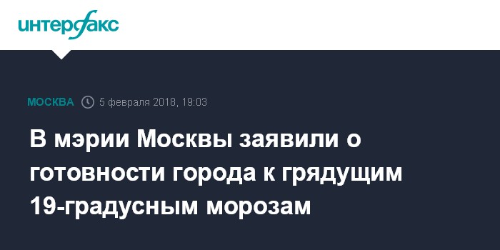 В мэрии Москвы заявили о готовности города к грядущим 19-градусным морозам