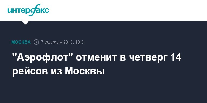 Москва. 7 февраля. INTERFAX.RU - "Аэрофлот" отменит в четверг 14 рейсов из "Шереметьево", следует из сообщения перевозчика.