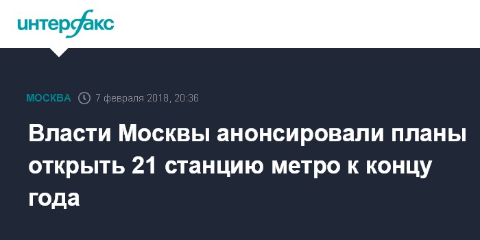 Москва. 7 февраля. INTERFAX.RU - По итогам года в столице планируется сдать 21 станцию метро, сообщил журналистам заместитель мэра Москвы по вопросам градостроительной политики и строительства Марат Хуснуллин.