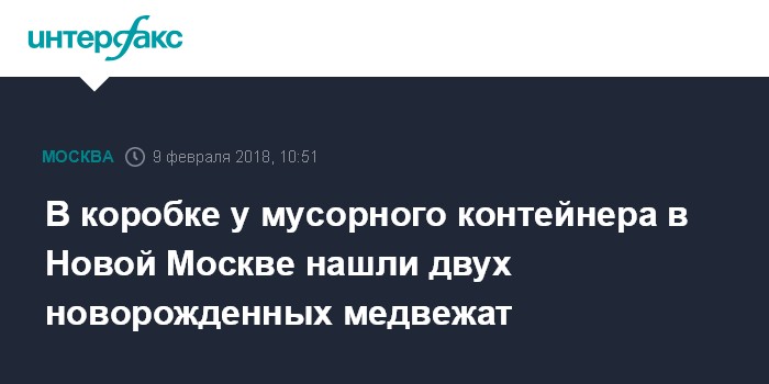 Москва. 9 февраля. INTERFAX.RU - Житель поселка Марьино поселения Филимонковское Новой Москвы обнаружил накануне возле мусорного контейнера рядом с домом коробку, в которой находились два новорожденных медвежонка.