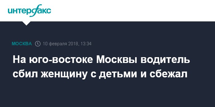 Москва. 10 февраля. INTERFAX.RU - Сбивший женщину с двумя детьми на юго-востоке Москвы водитель скрылся с места происшествия, его разыскивают, сообщил "Интерфаксу" в субботу информированный источник.