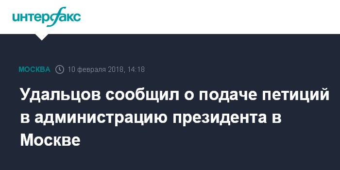 Москва. 10 февраля. INTERFAX.RU - Активисты проводят подачу петиций в приемную администрации президента России в Москве, сообщил координатор движения "Левый фронт" Сергей Удальцов.