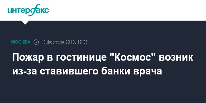 Пожар в гостинице "Космос" возник из-за ставившего банки врача