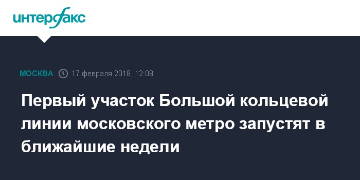 Москва. 17 февраля. INTERFAX.RU - Первый участок Большой кольцевой линии метро от станции "Деловой центр" до станции "Петровский парк" планируется запустить в ближайшие две недели, сообщил журналистам в субботу заместитель мэра Москвы по вопросам градостроительной политики и строительства Марат Хуснуллин.