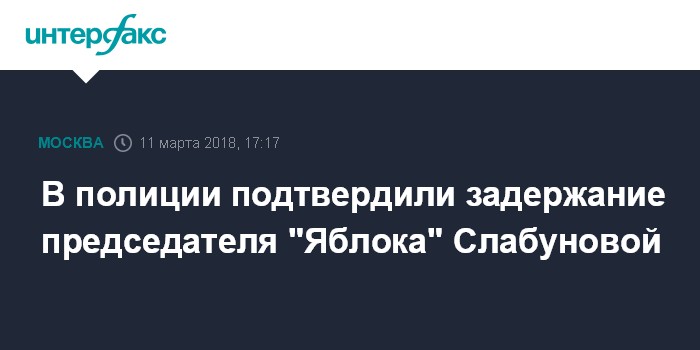 Ранее пресс-секретарь Слабуновой Татьяна Бибина сообщила "Интерфаксу", что председатель партии "Яблоко" была задержана за нарушение закона о митингах в ходе мероприятия "День матери в Останкино".