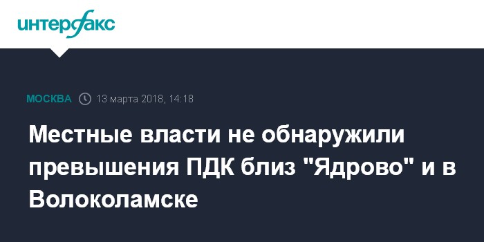 "Вчера, 12 марта, замеры проводились в Волоколамске (...) и в деревне Ядрово. По предварительным данным, превышения ПДК нет", - сказал Гаврилов в видеообращении, опубликованном на сайте районной администрации.