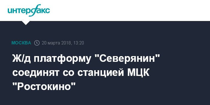 Москва. 20 марта. INTERFAX.RU - Согласован проект объединения платформы "Северянин" Ярославского направления железной дороги со станцией "Ростокино" Московского центрального кольца, сообщили в пресс-службе Москомархитектуры.