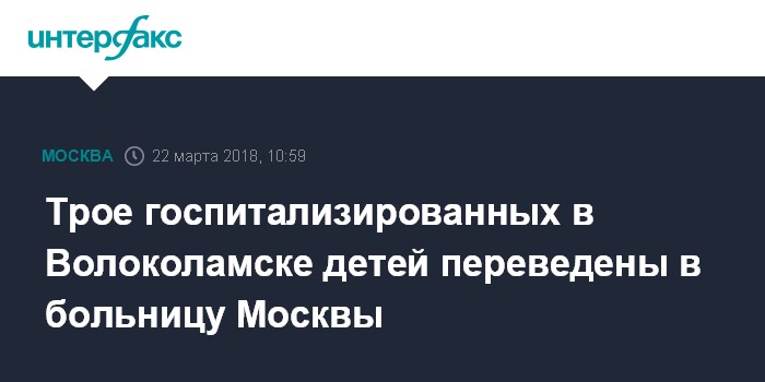 Москва. 22 марта. INTERFAX.RU - В центральной больнице подмосковного Волоколамска остается трое детей, госпитализированных накануне, еще трое переведены в московскую больницу, сообщил министр здравоохранения Московской области Дмитрий Марков.
