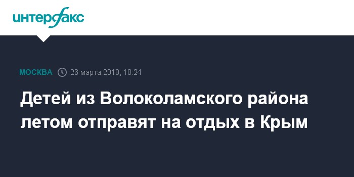 Москва. 26 марта. INTERFAX.RU - Бесплатные путевки в крымские лагеря выдадут летом детям из Волоколамского района, где на прошедшей неделе был зафиксирован всплеск обращений к медикам после выбросов газа с мусорного полигона "Ядрово". Об этом сообщил и.о. главы Волоколамского района Андрей Вихарев.