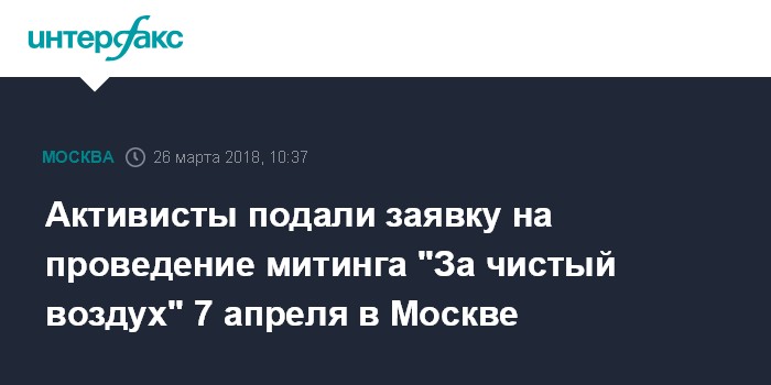 Активисты подали заявку на проведение митинга "За чистый воздух" 7 апреля в Москве