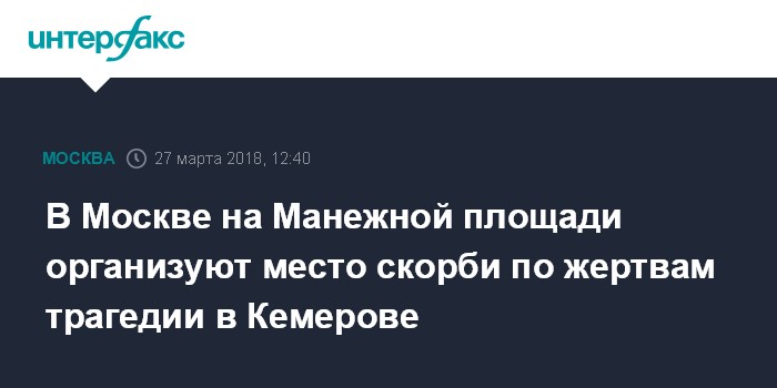В Москве на Манежной площади организуют место скорби по жертвам трагедии в Кемерове