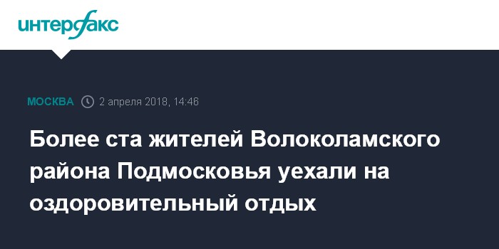Москва. 2 апреля. INTERFAX.RU - 122 жителя Волоколамского района в понедельник отправились в оздоровительные учреждения Московской области, сообщают в районной администрации.
