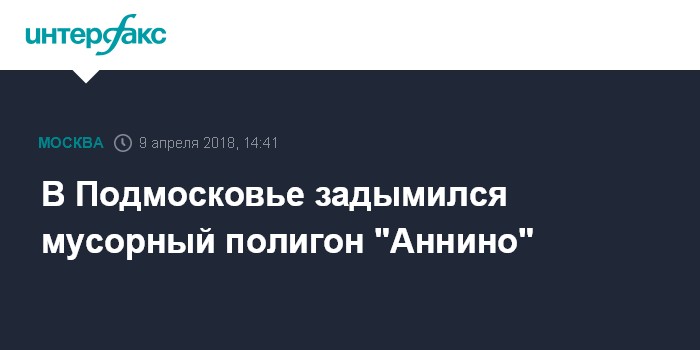 Москва. 9 апреля. INTERFAX.RU - Задымление зафиксировано на закрытом полигоне твердых бытовых отходов (ТБО) "Аннино", расположенном в Рузском округе Московской области.