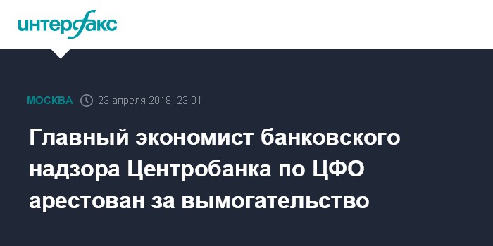 Главный экономист банковского надзора Центробанка по ЦФО арестован за вымогательство