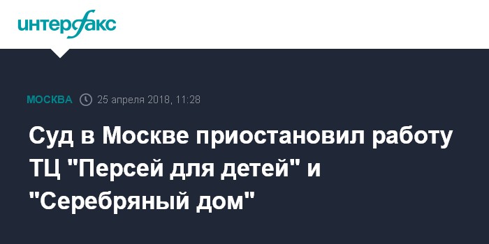 Суд в Москве приостановил работу ТЦ "Персей для детей" и "Серебряный дом"