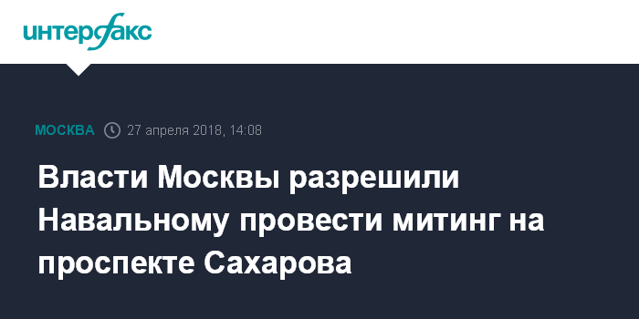 Власти Москвы разрешили Навальному провести митинг на проспекте Сахарова