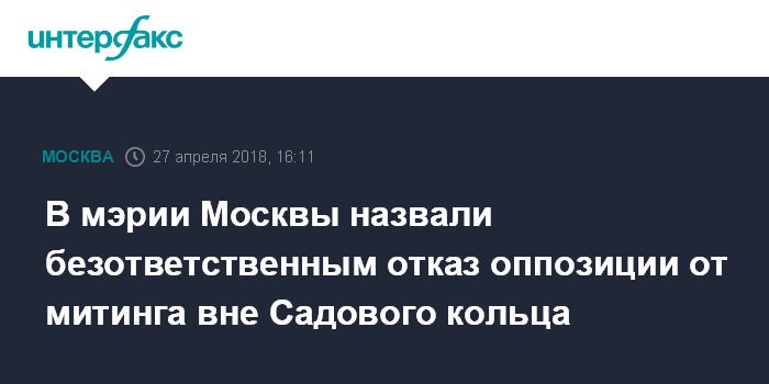 В мэрии Москвы назвали безответственным отказ оппозиции от митинга вне Садового кольца