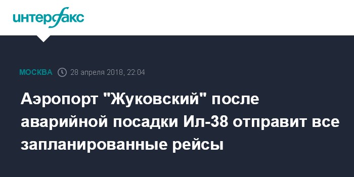 Москва. 28 апреля. INTERFAX.RU - Аэропорт "Жуковский" после аварийной посадки самолета Ил-38 ВМС Индии, совершенной на его аэродроме ранее в субботу, планирует отправить все запланированные на этот день гражданские рейсы.